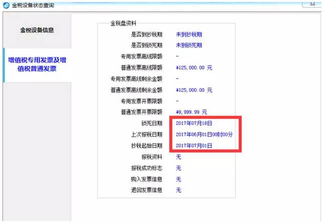计算机连接互联网状态下登陆开票系统,系统自动进行上报汇总,进行纳税申报后需再次登录系统完成自动清卡工作。 如何判断6月清卡成功: 点击“报税处理-状态查询-增值税专用发票及增值税普通发票” 抄税起始日期:2017.07.01 上次报税日期:2017.06.01 报税资料:无